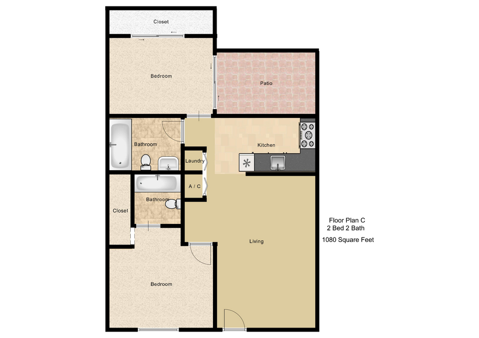 Look-N-Lease! Get $300.00 Off First Full Months Rent On 2 Bedroom/2 Bathroom (955 Square Feet)