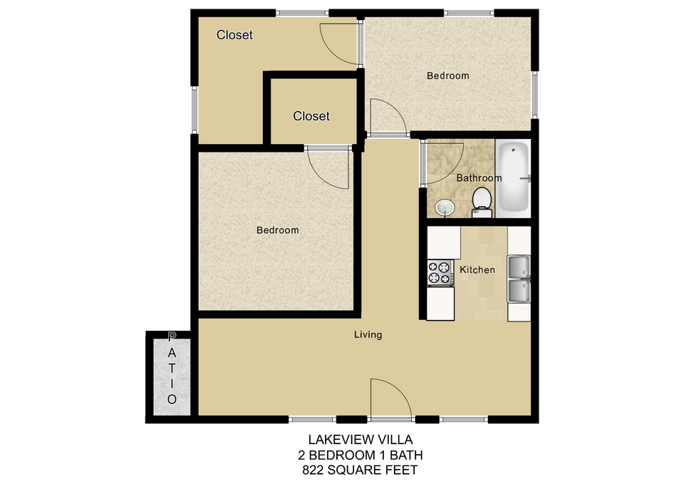 2 Bedroom / 1 Bath (B2 - Patio/Closet)