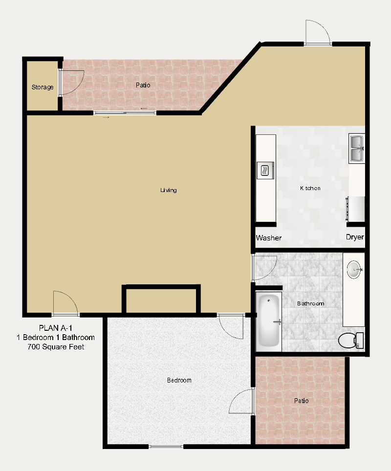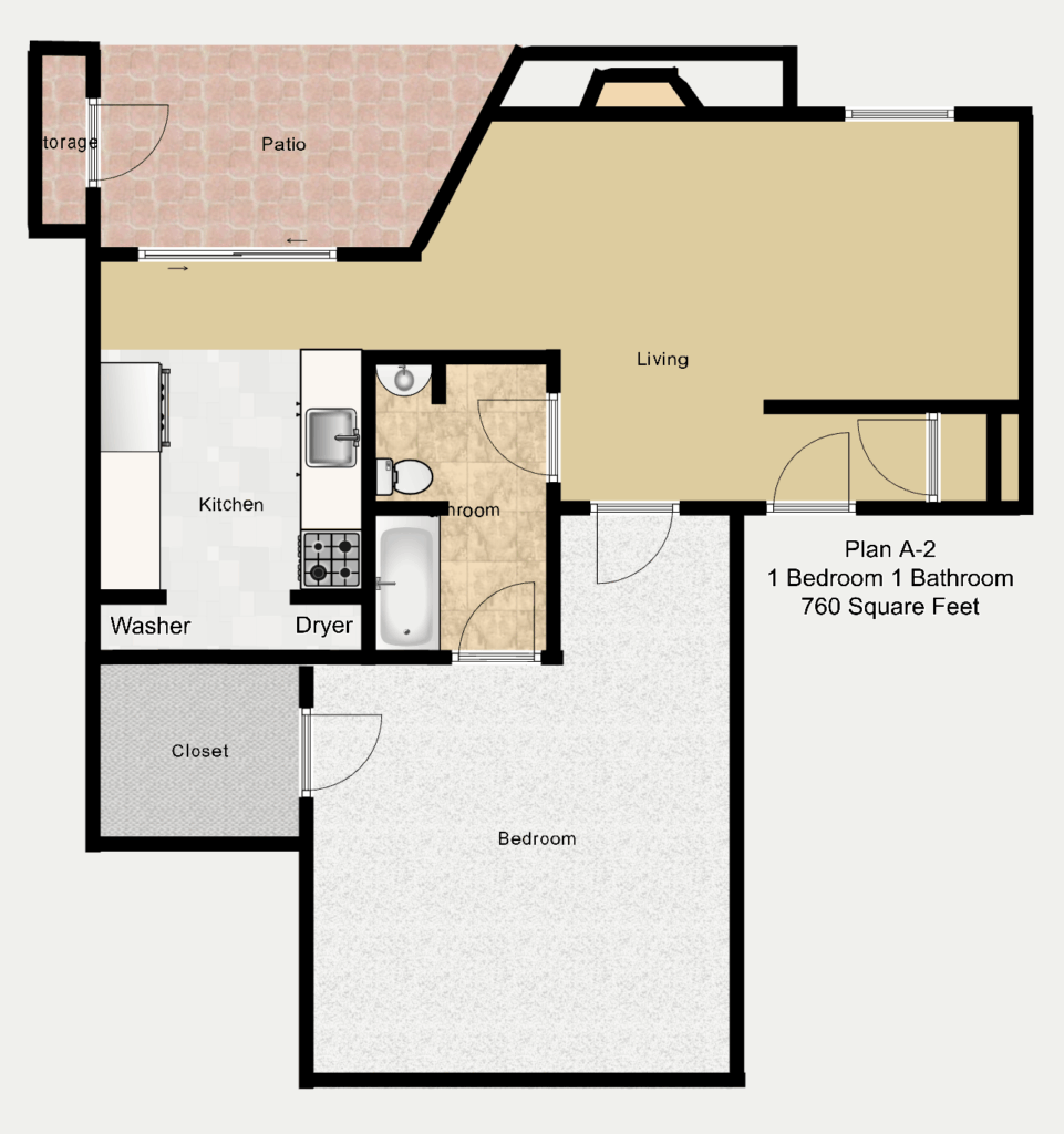 1 Bedroom / 1 Bath (A2)Call for Pricin
